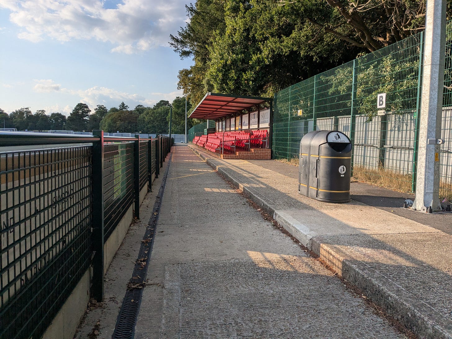 I arrived early. Which to me means having an entire grandstand to myself. Chichester’s pitch has a slight slope, so I sought out the high ground at the far end. The wasn’t particularly high, but it was good enough.